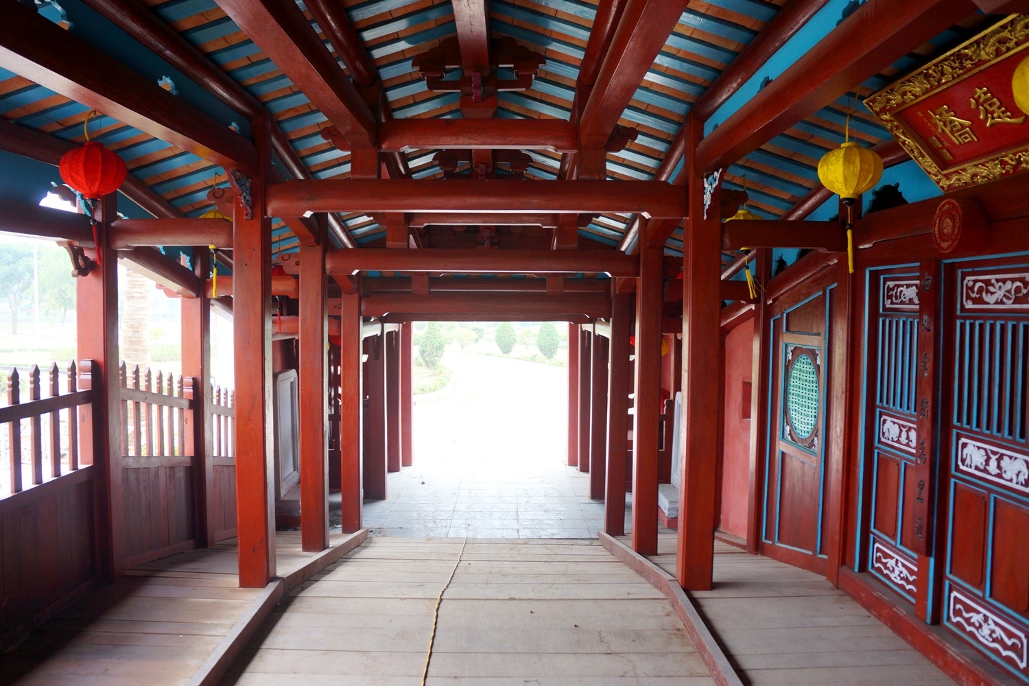 | Chùa được bắc qua một hồ nước nhỏ. Du khách đi qua cầu cũng sẽ có cảm giác như đi qua Chùa Cầu Hội An phiên bản thật, bắc qua lạch nước chạy ra sông Thu Bồn (Quảng Nam). |