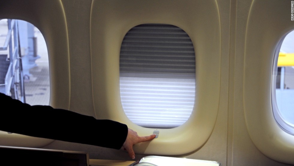 Cửa sổ của máy bay được thiết kế để đóng mở và đổi màu tự động. |