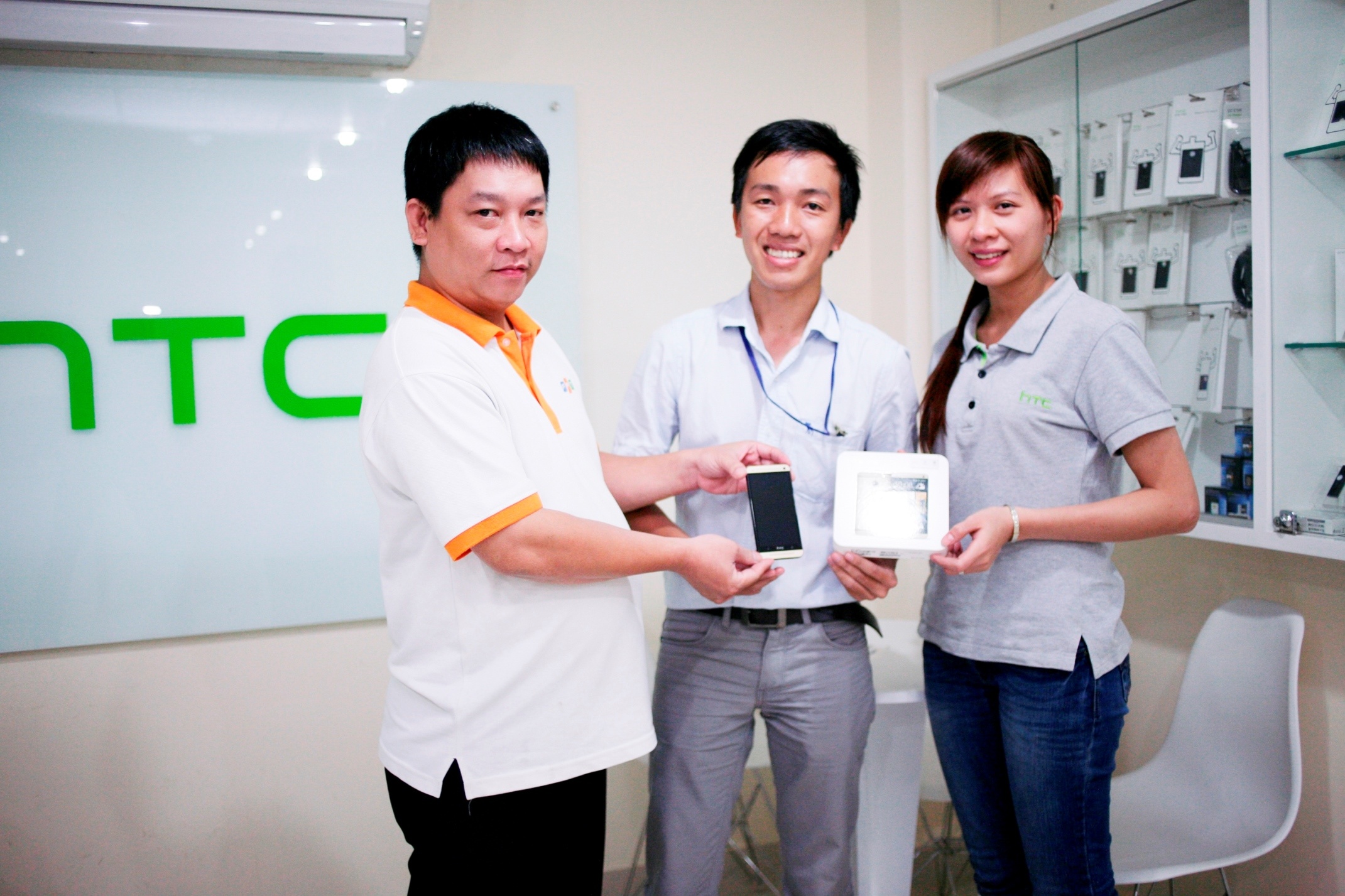 Đặc biệt, song song với việc ra mắt HTC One Gold, trong tuần đầu năm mới 2014, 3 chiếc HTC One Gold đã được tặng miễn phí cho 3 khách hàng theo chương trình khuyến mãi trúng thưởng 100% của HTC. Anh Nguyễn Quốc Long, chị Nguyễn Thị Kiều Trang và anh Nguyễn Anh Tuấn đều rất bất ngờ và vui mừng khi được trao phần quà đặc biệt này. Chương trình còn kéo dài đến 15/2.