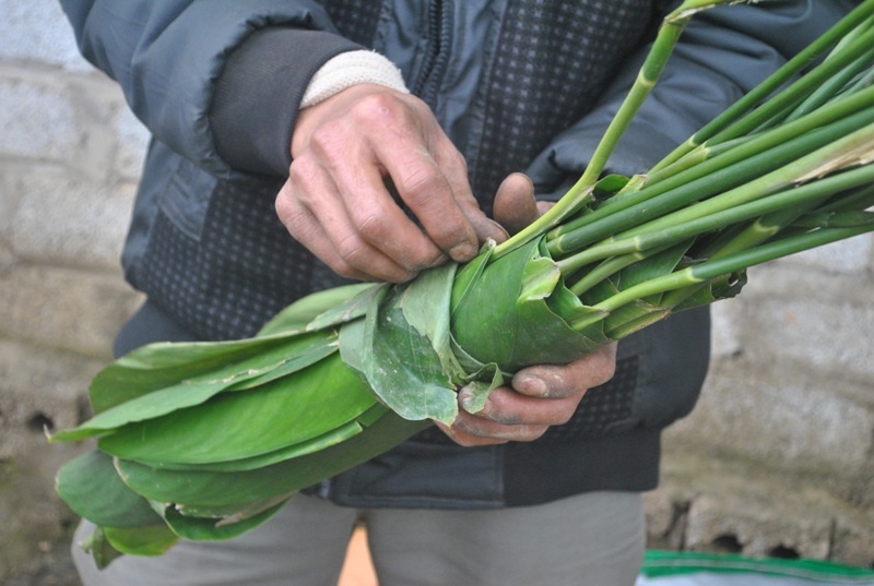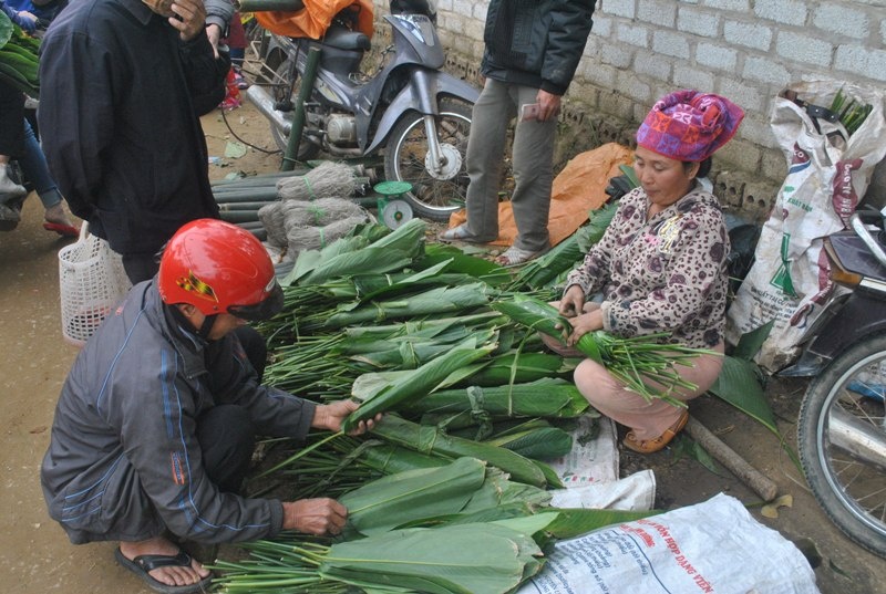 | Giá cả tại phiên chợ này rẻ hơn nhiều so với nơi khác. “Tróng giang này 10.000 đồng, lá gói bánh cũng chừng ấy”, cô Hoa, một người bán hàng nói. |