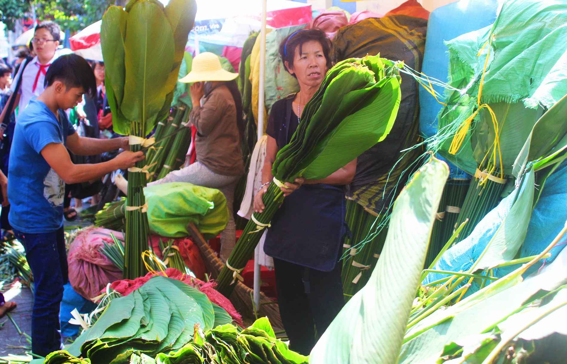 Các thương lái thường mua số lượng lớn lá dong để phân phối tới các chợ khác.