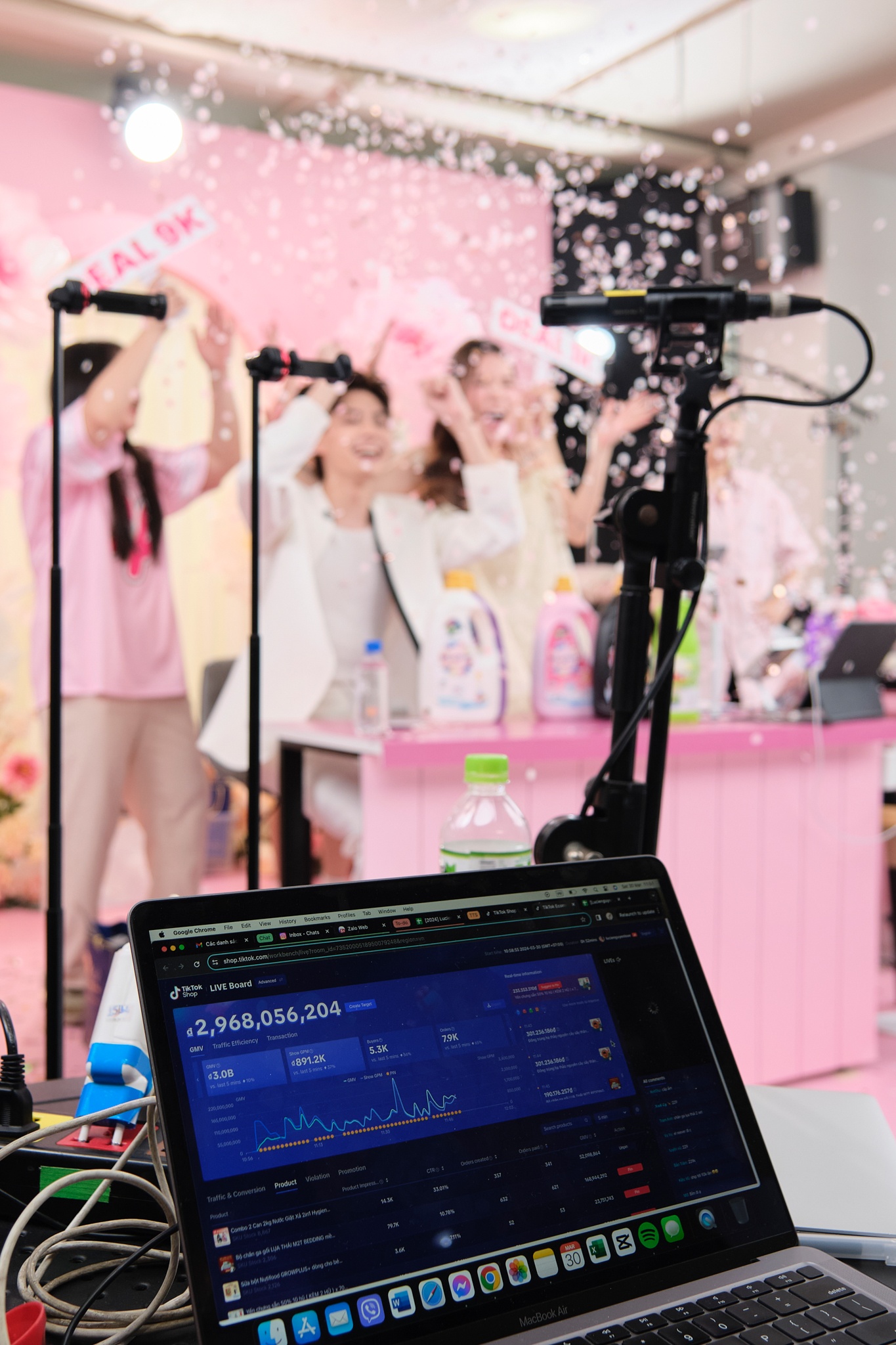 | Phiên livestream hoành tráng này có sự đầu tư 4-5 tỷ đồng từ TikTok Shop, gồm tiền voucher, truyền thông... Phía ekip chúng tôi cũng chi thêm khoảng 2 tỷ đồng để bổ sung nguồn lực khác. Ngoài ekip của vợ chồng tôi và TikTok, còn có đơn vị hỗ trợ tổ chức, truyền thông và đại diện của các nhãn hàng. |