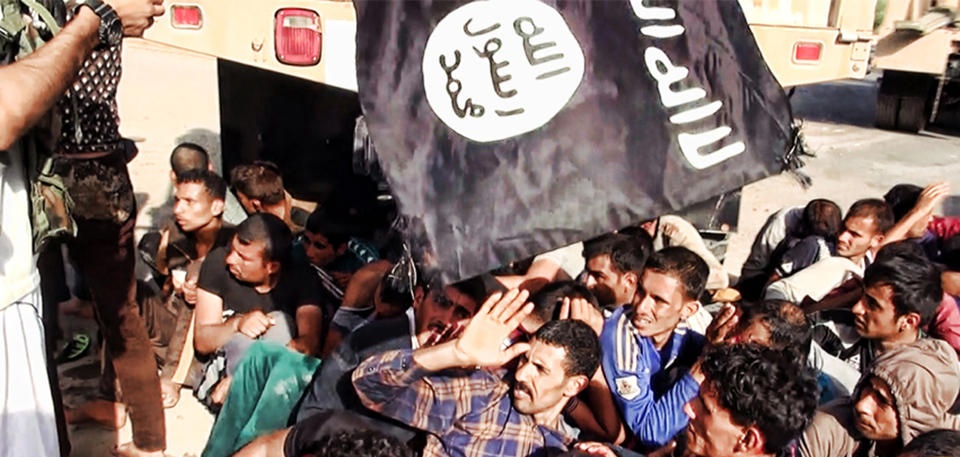 | Trong những ảnh mới nhất trên trang web của tổ chức Hồi giáo cực đoan "Nhà nước Hồi giáo Iraq và Levant" (ISIL) hôm 14/6, người ta thấy những chiến binh bịt mặt buộc những binh sĩ mà chúng bắt sau khi chiếm căn cứ quân sự ở thành phố Tikrit cởi quân phục, nằm sấp xuống đất và đặt tay ra sau lưng. |