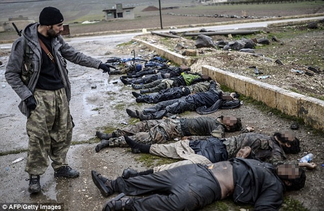 Những bức ảnh cho thấy có khoảng 20 phiến quân bị giết. Đây là những kẻ cố thủ ở Kobane sau nhiều tuần bị Mỹ và đồng minh không kích. Với vị trí chiến lược, phe người Kurd coi việc giành được Kobane là chiến thắng mang tính lịch sử của cuộc chiến. |