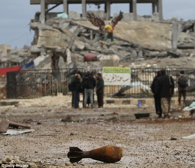Dấu vết của chiến sự, những quả đạn pháo chưa nổ, vẫn nằm la liệt trên đường phố. |