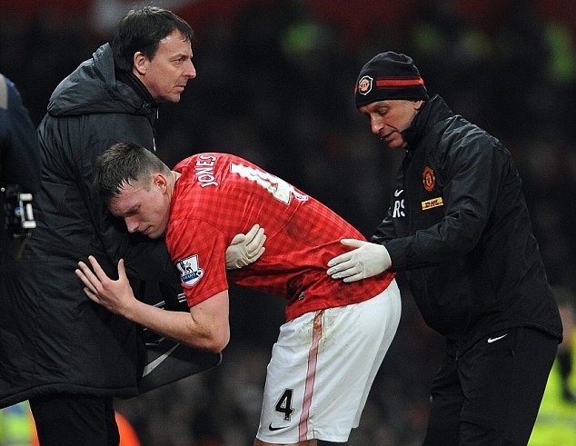 “Huyết khối nhẹ” hay còn gọi là tụ máu, khiến chỗ đau bị phù nề. Chân của Phil Jones bị sưng to sau khi dính chấn thương.
