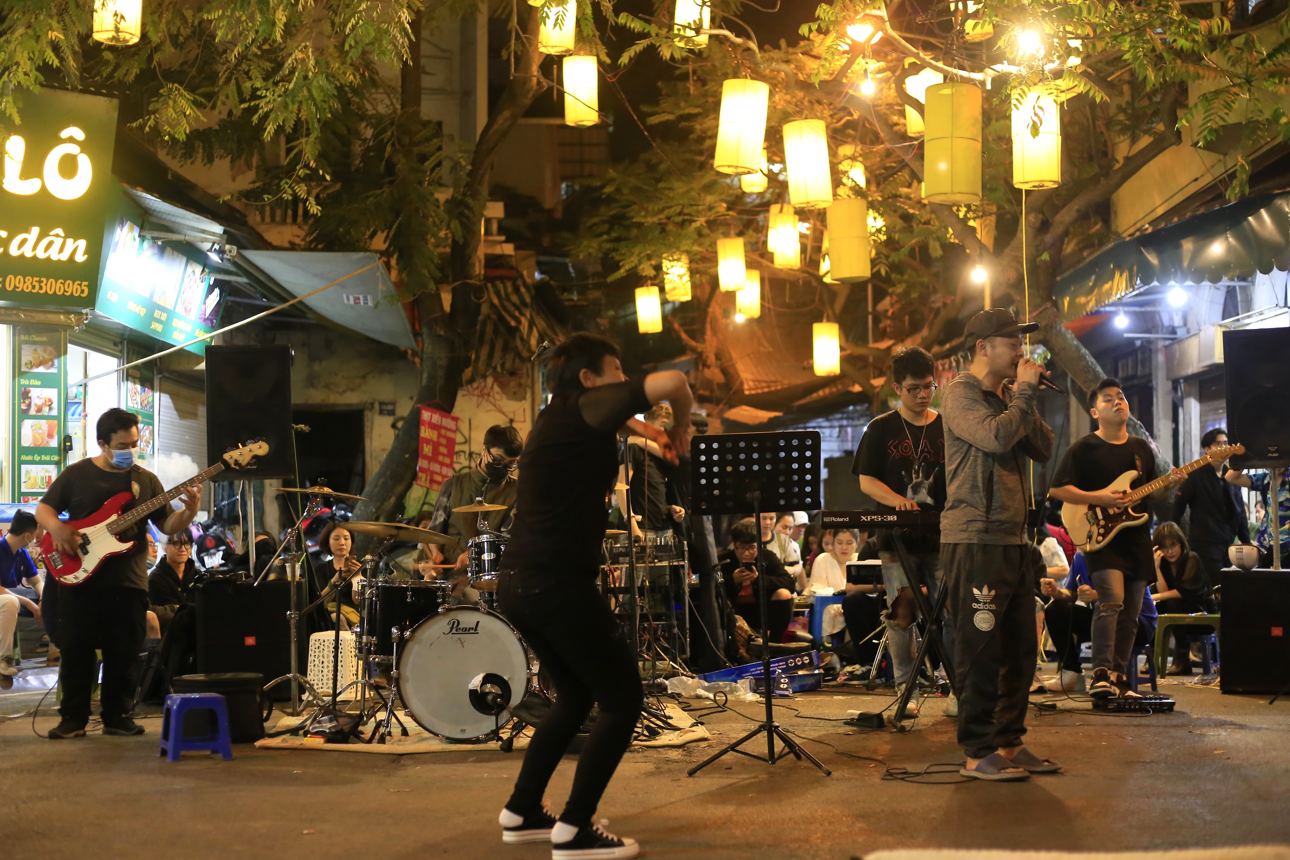 22h tối cuối tuần, khu vực Tạ Hiện (Hoàn Kiếm) tấp nập bởi tiếng nhạc xập xình, tiếng chào mời khách từ hàng quán hai bên đan vào nhau không ngớt.