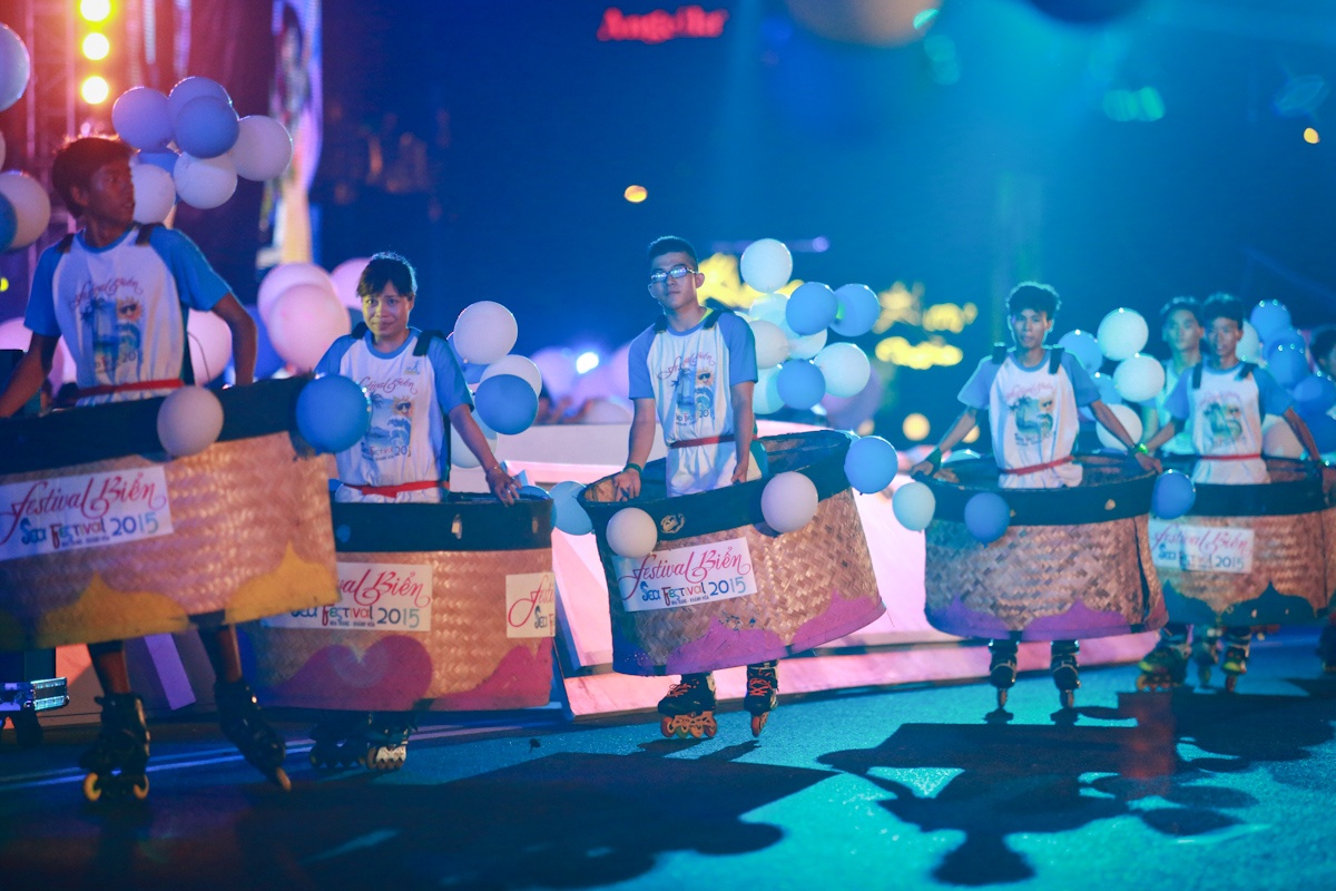 | Với chủ đề “Biển xanh - xanh mãi”, lễ khai mạc được dàn dựng hoành tráng với sự tham gia của 160 diễn viên múa, hơn 700 diễn viên quần chúng. |