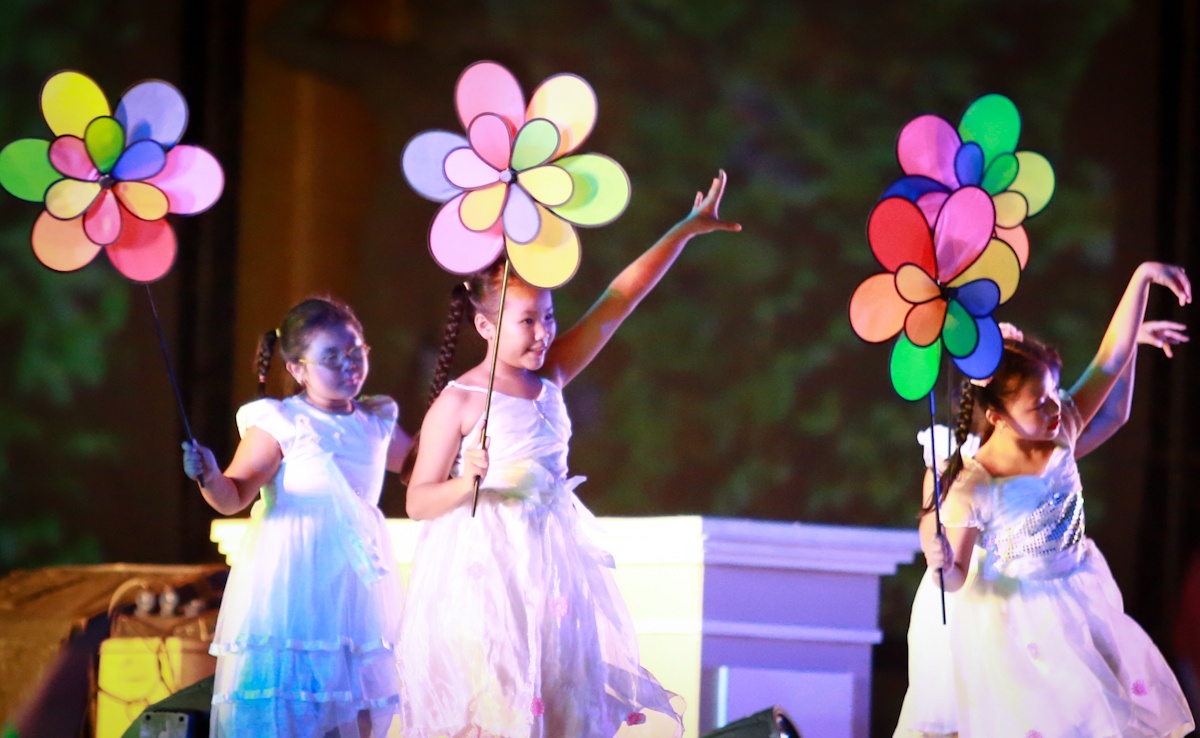 Các em thiếu nhi rạng rỡ trên sân khấu.