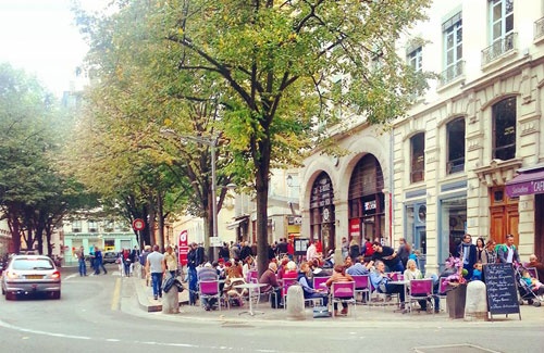 Các quán cà phê vỉa hè ở khu phố cổ Paris. Ảnh: Nguyệt Thơ. |