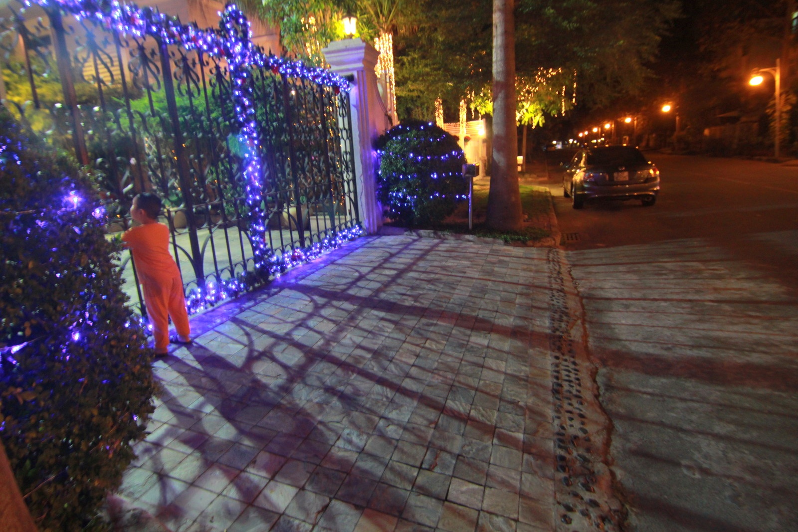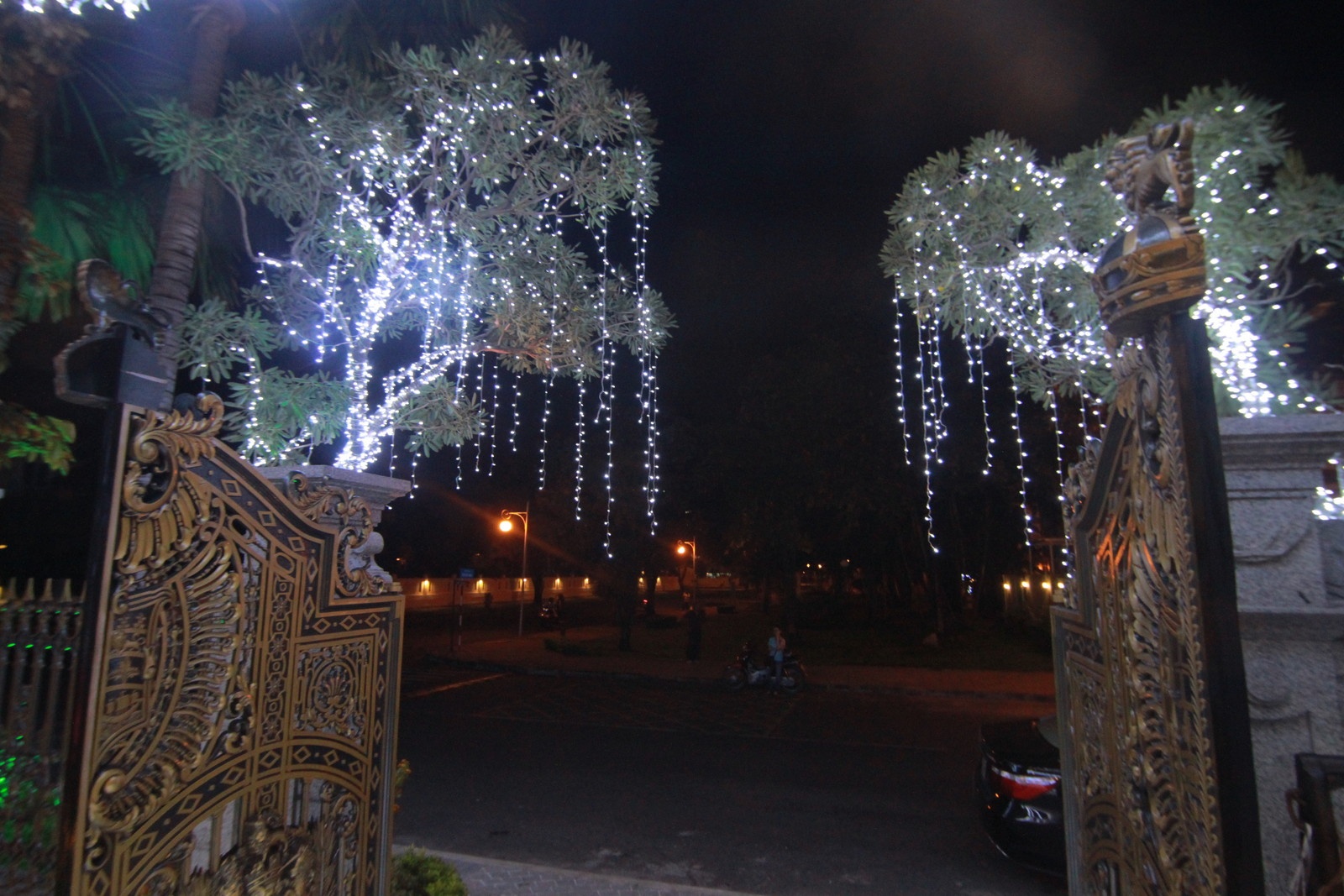 | Cổng một căn biệt thự lung linh ánh đèn. Chủ nhà cho biết, đã trang trí xong từ đầu tháng 12. |