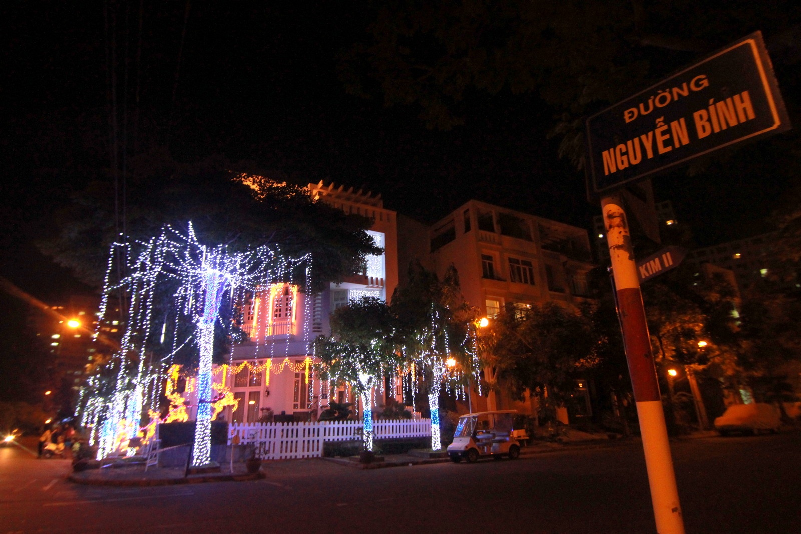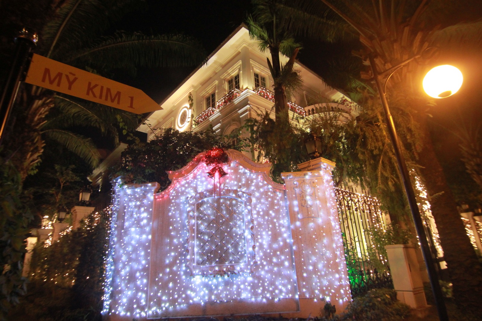 | Trước giáng sinh, nhiều biệt thự triệu đô của giới nhà giàu ở khu Phú Mỹ Hưng được trang trí lộng lẫy. Đẹp nhất là những ngôi biệt thự nằm ngay ngã tư Nguyễn Bính - Đặng Đức Thuật. |