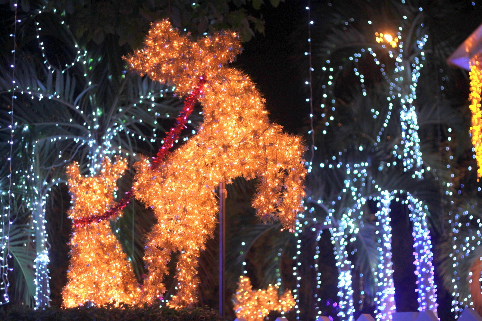 | Hầu hết các cây xanh quanh biệt thự đều được chủ nhà kết đèn. |