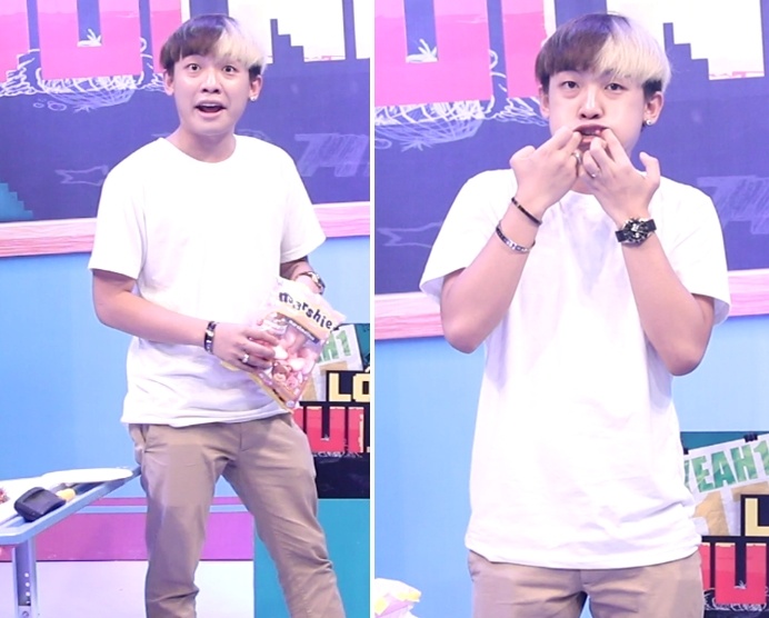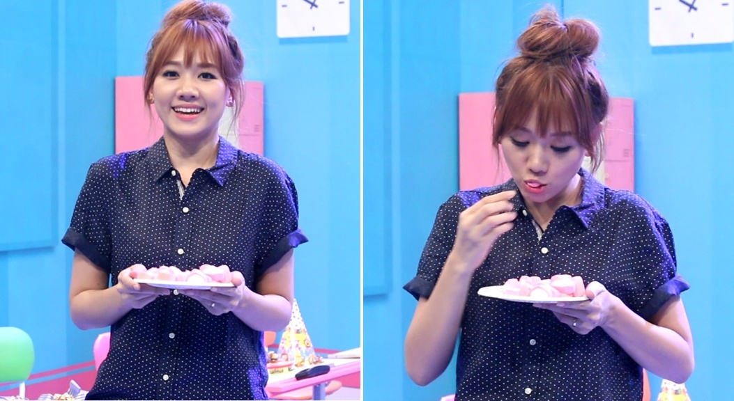 | Hoàng Yến Chibi hài hước khi ăn kẹo. |