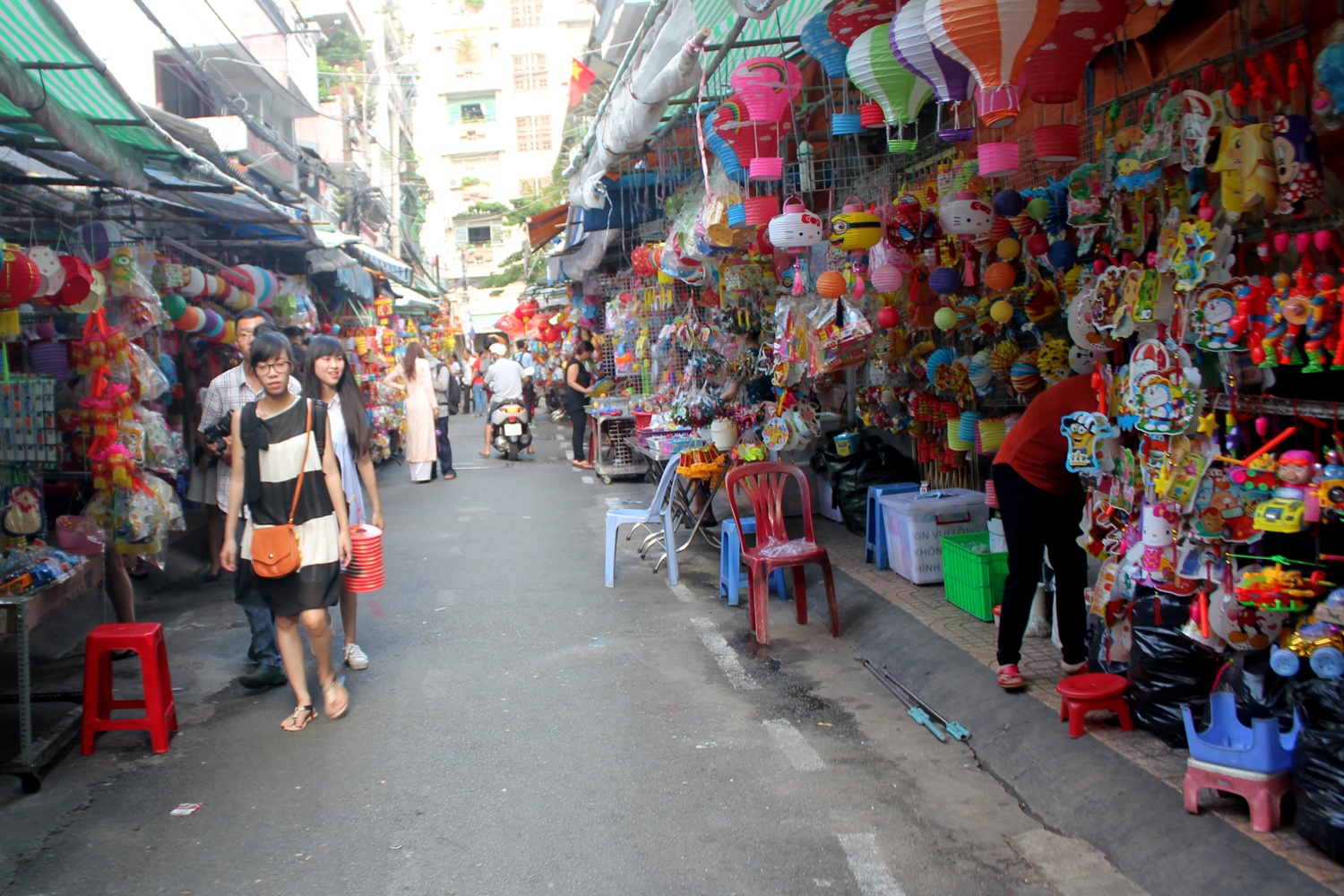 | Nhiều cửa hàng chỉ bán lồng đèn, đồ chơi Trung Quốc, loại hẳn hàng trong nước. Ảnh: Zen Nguyễn. |