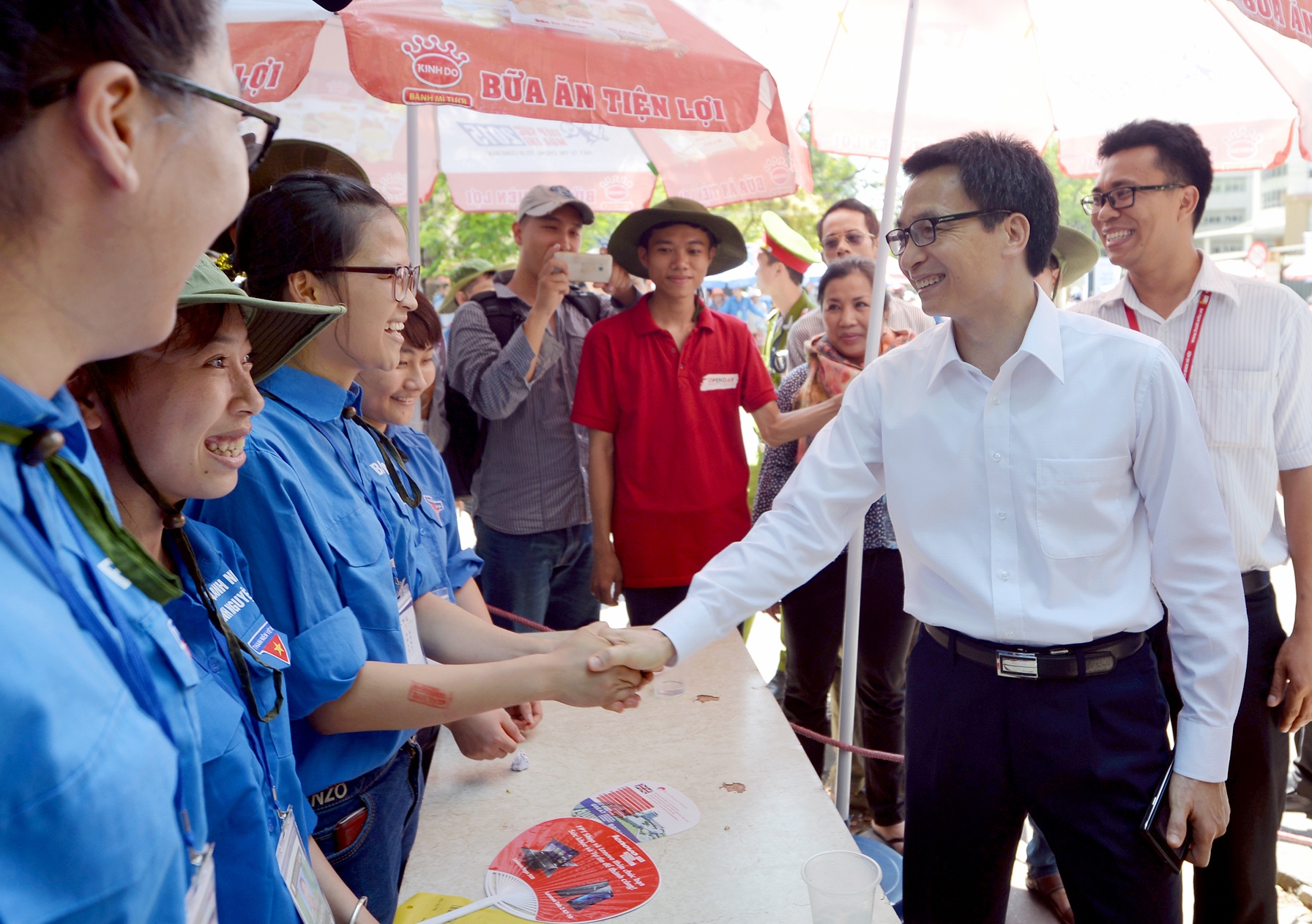Phó thủ tướng đánh giá cao lực lượng sinh viên tình nguyện đã góp phần vào việc tổ chức thành công kỳ thi THPT quốc gia. Ảnh: Hoàng Anh.