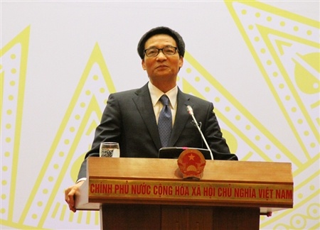 | Bộ trưởng, Chủ nhiệm Văn phòng Chính phủ Nguyễn Văn Nên (bên trái) và Phó Thủ tướng Vũ Đức Đam. |