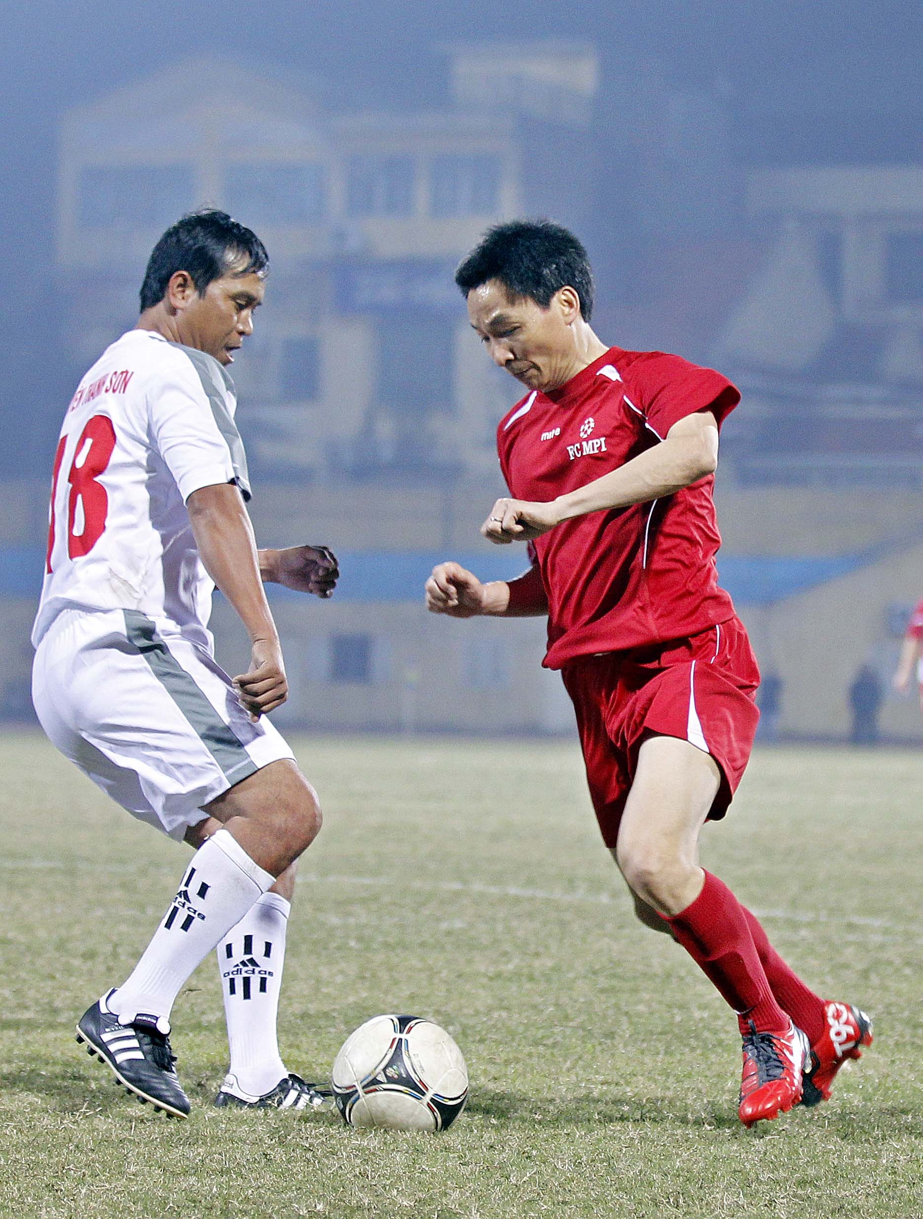 Cựu danh thủ - HLV Trần Công Minh tranh bóng quyết liệt với Phó thủ tướng Vũ Đức Đam.