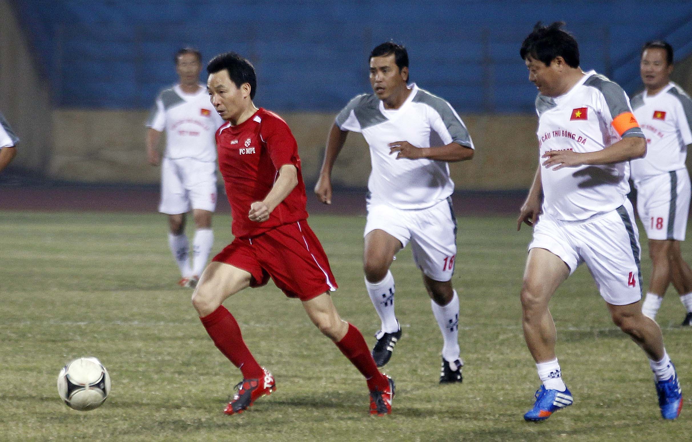 Phó thủ tướng phối hợp cùng đồng đội bật tường xâm nhập vòng cấm đội tuyển cựu tuyển thủ Việt Nam.