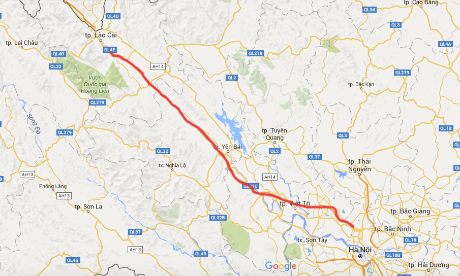 | Toàn cảnh tuyến cao tốc Nội Bài - Lào Cai dài 265 km. |