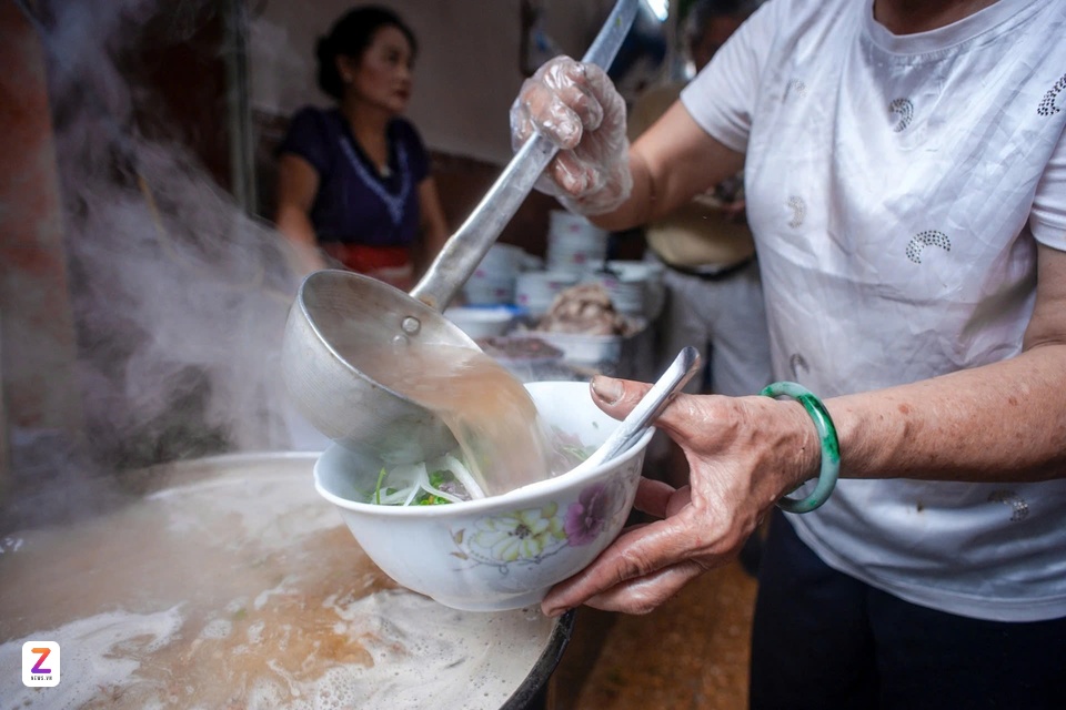 Quán phở Tư Lùn nổi tiếng với nước dùng đục, béo. Ảnh: Thụy Trang. |
