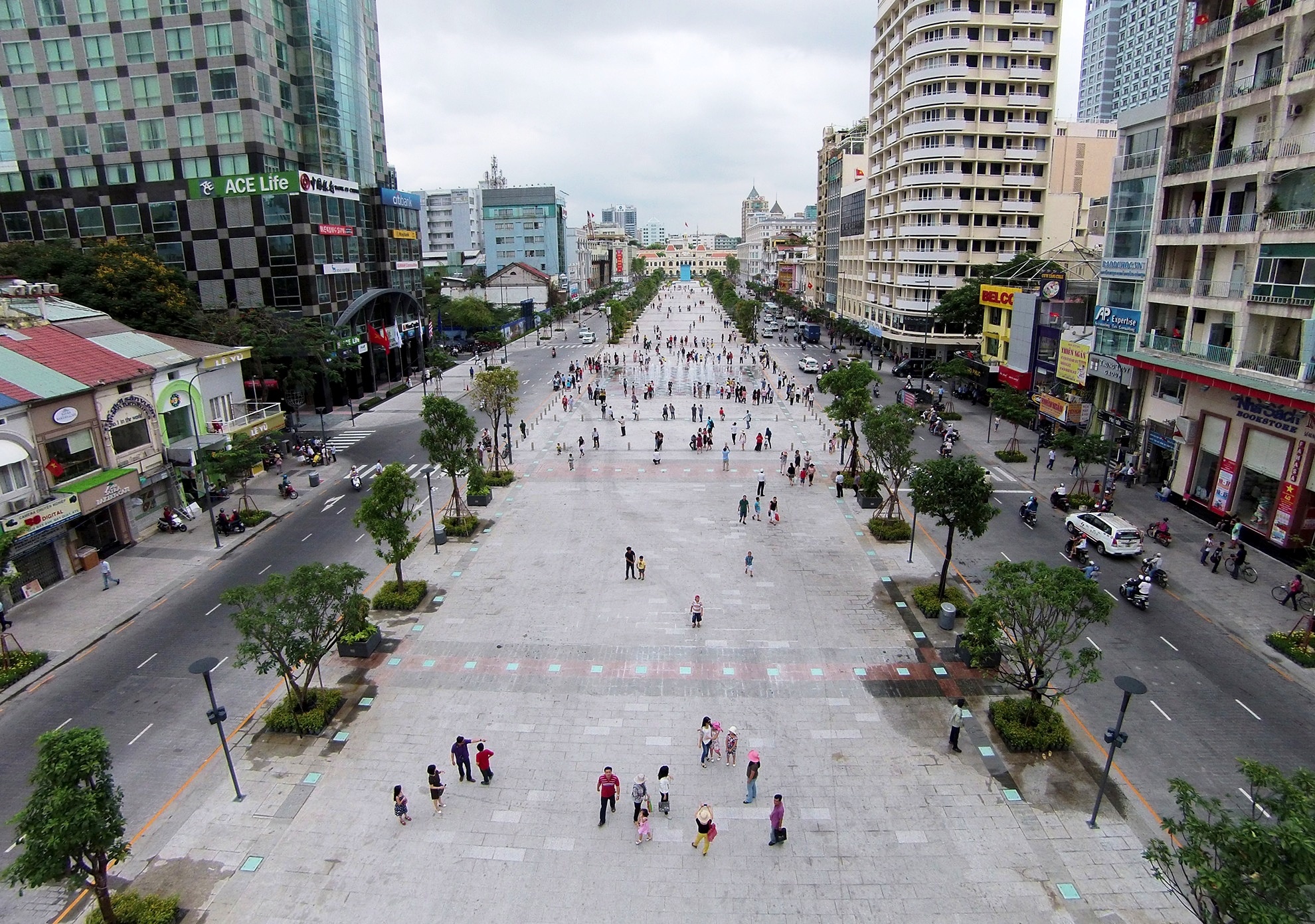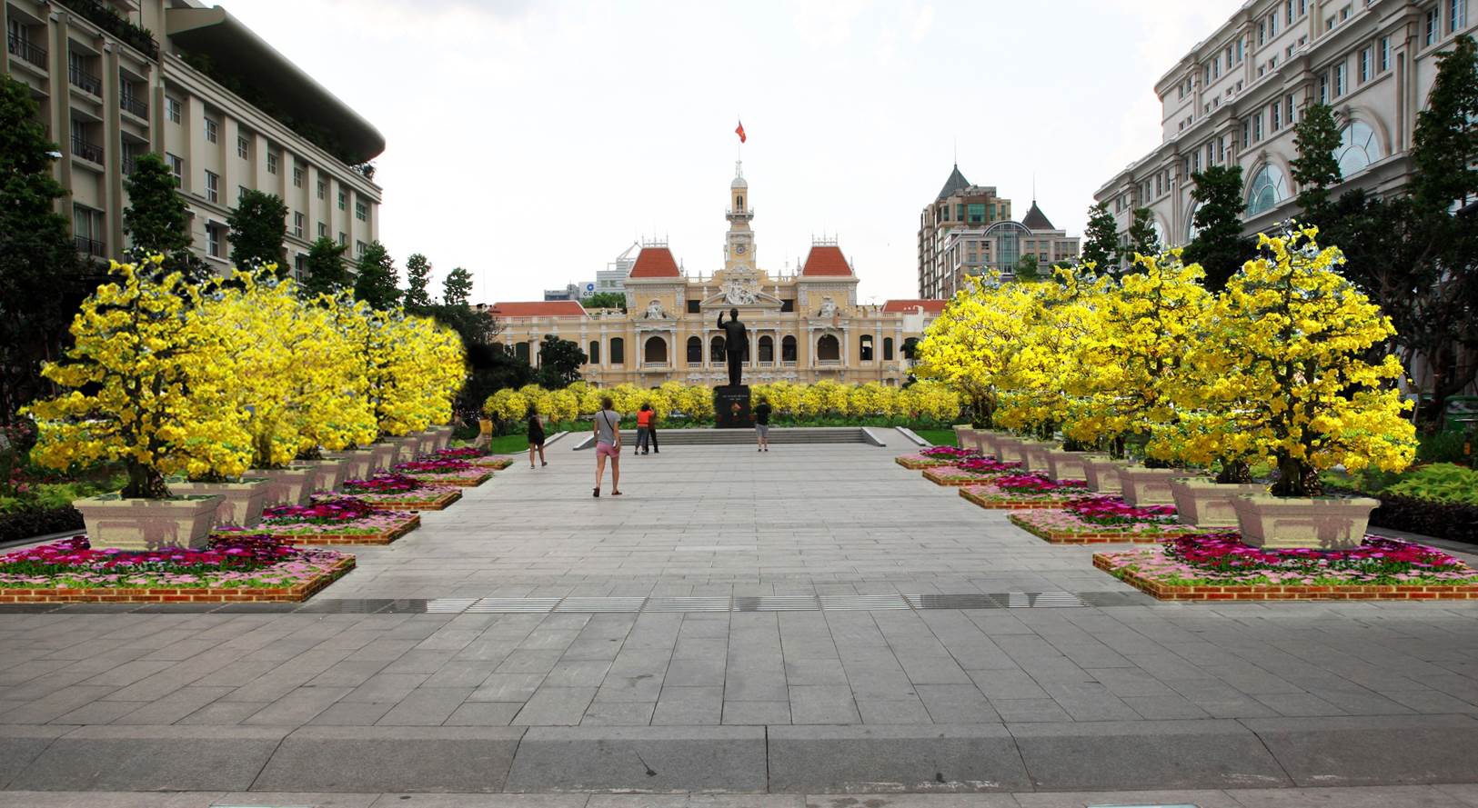 | Đường hoa 2016 trải dài suốt phố đi bộ Nguyễn Huệ (từ giao lộ đường Lê Thánh Tôn tới đường Tôn Đức Thắng) với tổng chiều dài khoảng 720 m. Khu vực Tượng đài Bác được bố trí 36 chậu mai, gồm 18 chậu 2 bên tạo thành đường dẫn hướng đến Tượng đài Bác, hai hàng mai bố trí phía sau lưng tượng đài mang đến màu sắc xuân đặc trưng của Tết Miền Nam. |