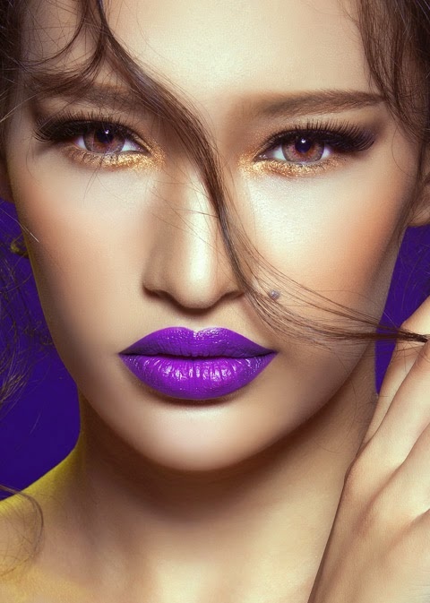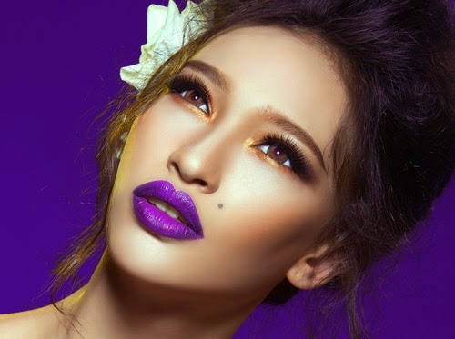 | Chọn son môi màu tím bằng lăng kết hợp với lớp nền thật mỏng ,và sử dụng màu mắt thật nhẹ nhàng, giúp bạn trở nên cuốn hút hơn |