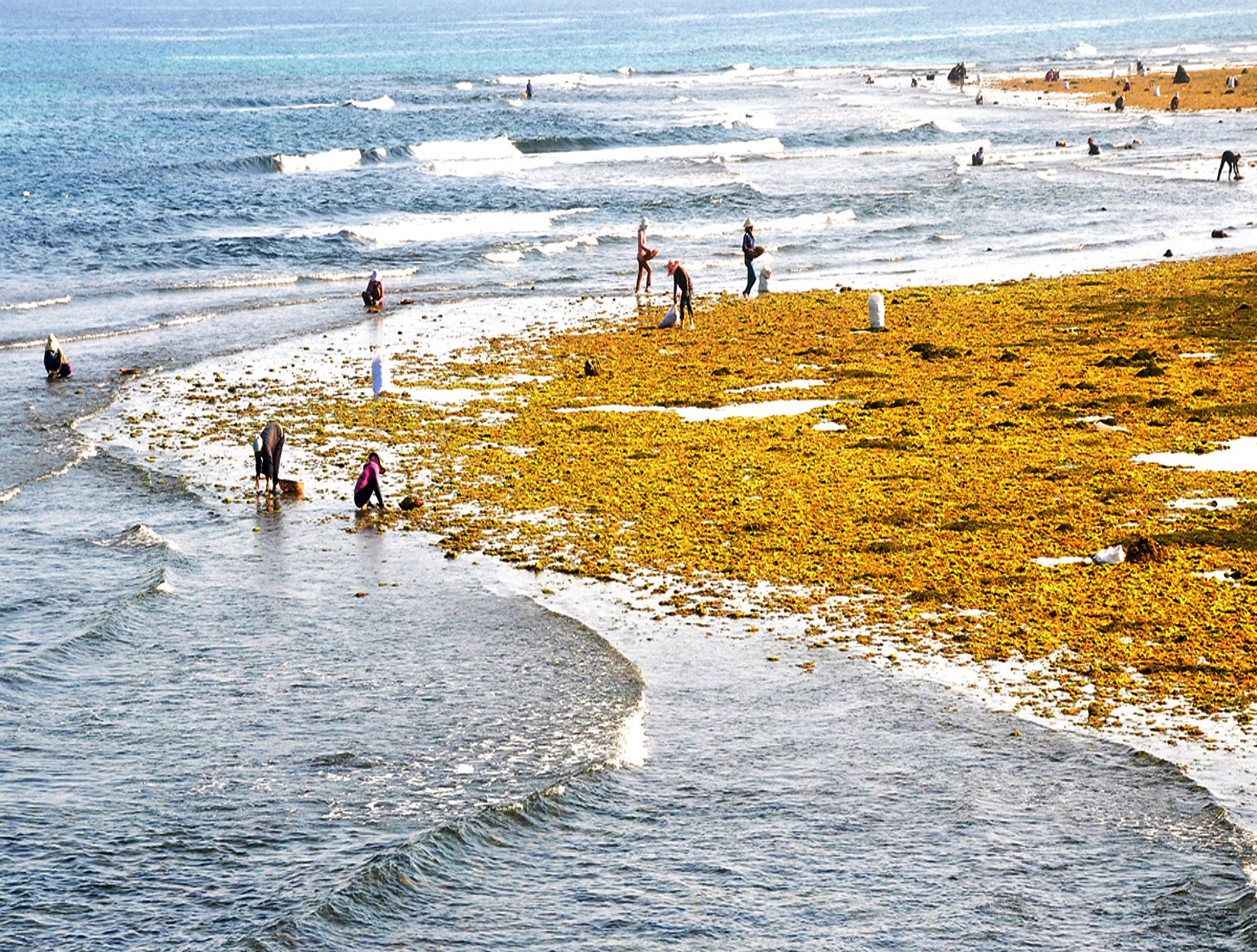 | Cuộc sống bình dị của người dân bên bãi đá quanh đảo. |