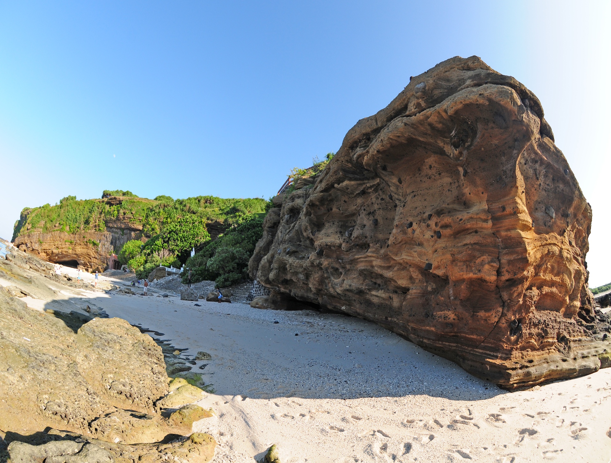 | Vách đá trầm tích núi lửa hàng triệu năm có dáng hình độc đáo ở thắng cảnh chùa Hang - dị tích lịch sử văn hóa cấp quốc gia ở huyện đảo Lý Sơn. |