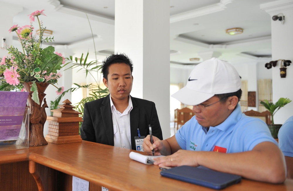 | Ông Nguyễn Tấn Anh - đại diện đoàn U19 Việt Nam ký biên bản nhận lại kiện hành lý mà U19 Việt Nam thất lạc tối qua. |