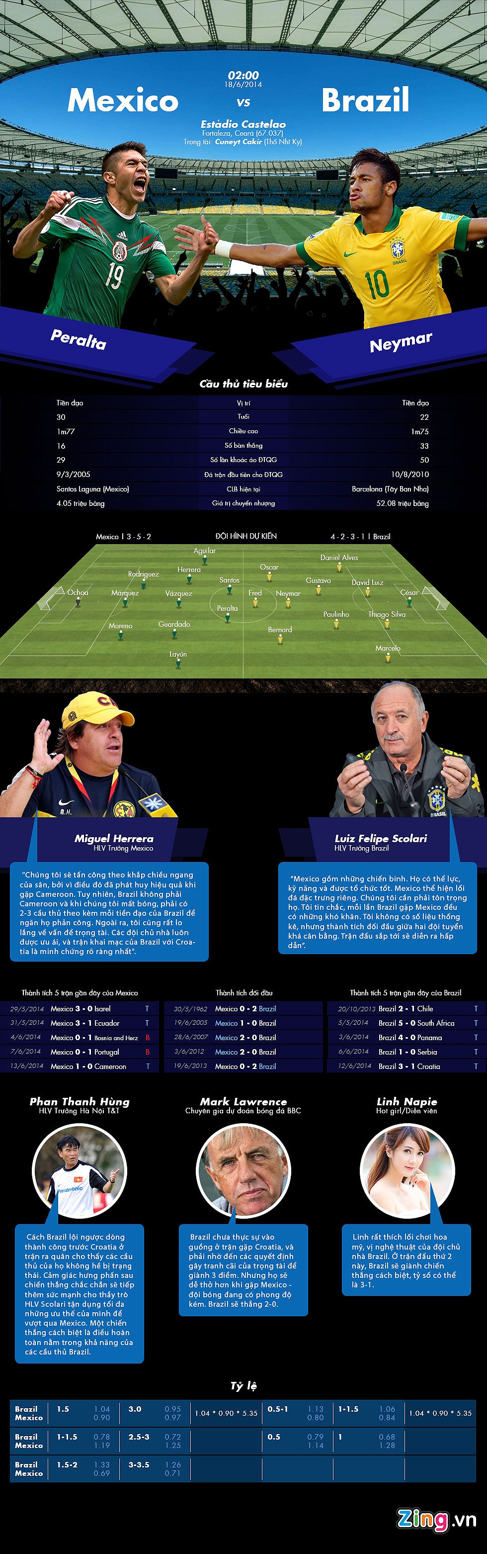 Trong 5 trận gần đây nhất, Brazil toàn thắng, trong khi Mexico thi đấu khá trồi sụt. Đây là một phần nguyên nhân khiến El Tri không được đánh giá cao trong cuộc chạm trán chủ nhà.