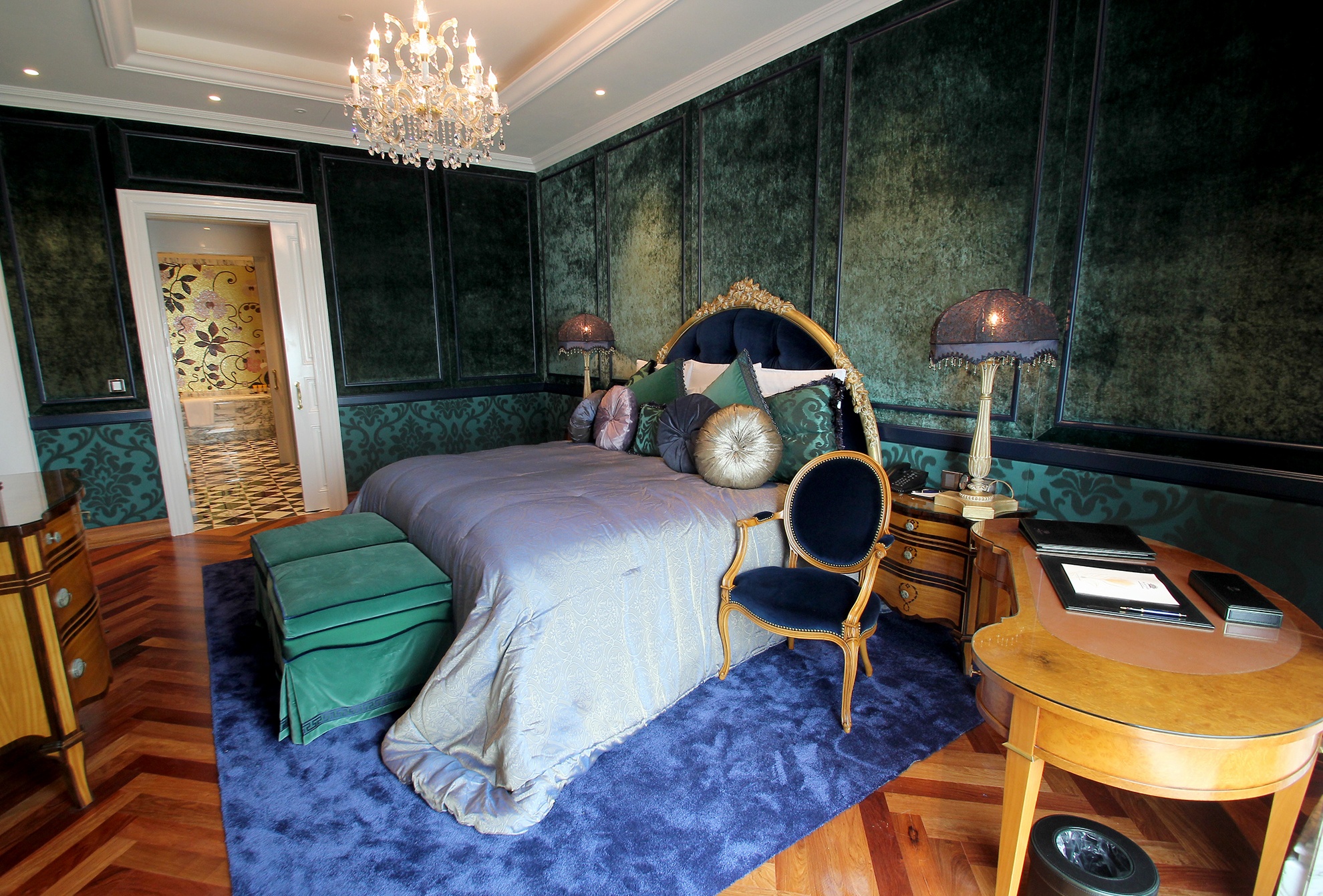 | Phòng ngủ thứ nhất tại lầu dưới theo phong cách hoàng tộc, màu sắc nền nã. |