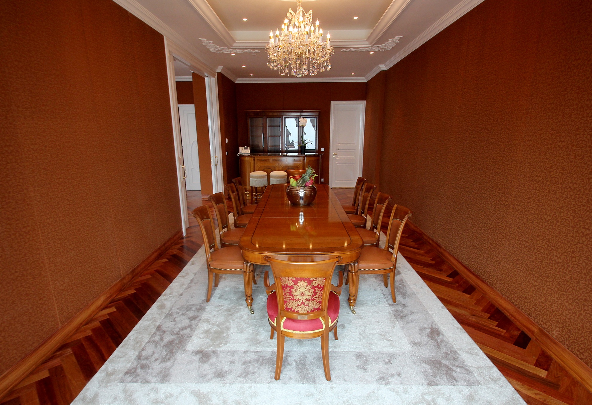 | Theo chia sẻ của người quản lý khách sạn, điểm nhấn hàng đầu của phòng nguyên thủ là thiết kế nội thất tinh xảo. |