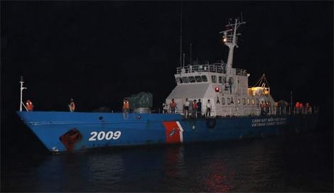 | Tàu CSB 2009 tham gia tìm kiếm cứu hộ 2 phi công mất tích trên biển Bình Thuận. Ảnh: Cảnh sát biển. |