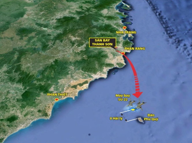 | Vị trí hai máy bay SU 22 mất liên lạc trên vùng biển Ninh Thuận - Đồ họa: Tuổi trẻ. |