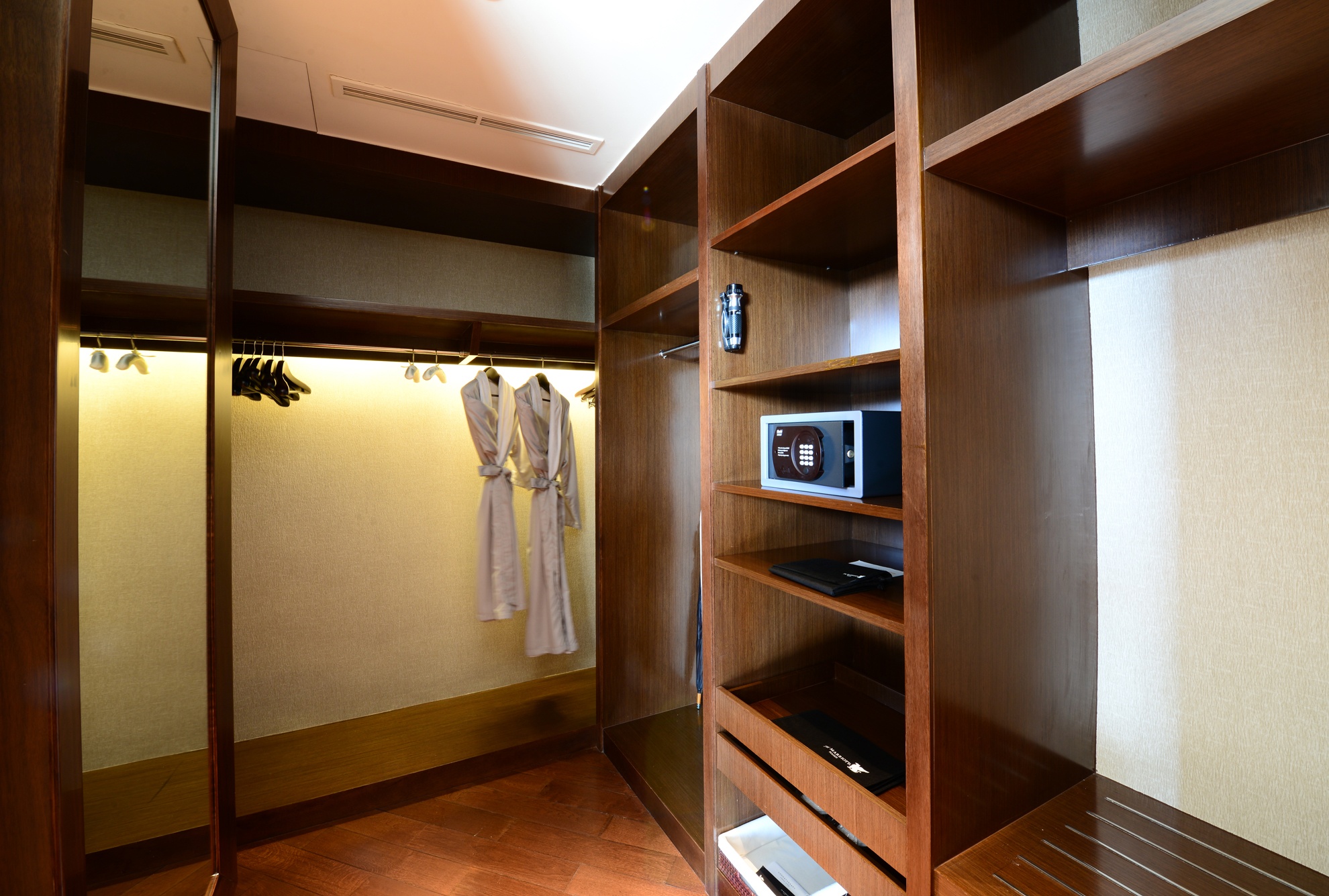 Hai tủ quần áo riêng biệt với đầy đủ các thiết bị như tủ bảo mật, bộ đôi áo ngủ, dù, đèn pin, mắc treo, dép đi trong nhà...