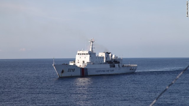| Tàu hải cảnh Trung Quốc áp sát tàu cảnh sát biển 8003 của Việt Nam. Ảnh: CNN |