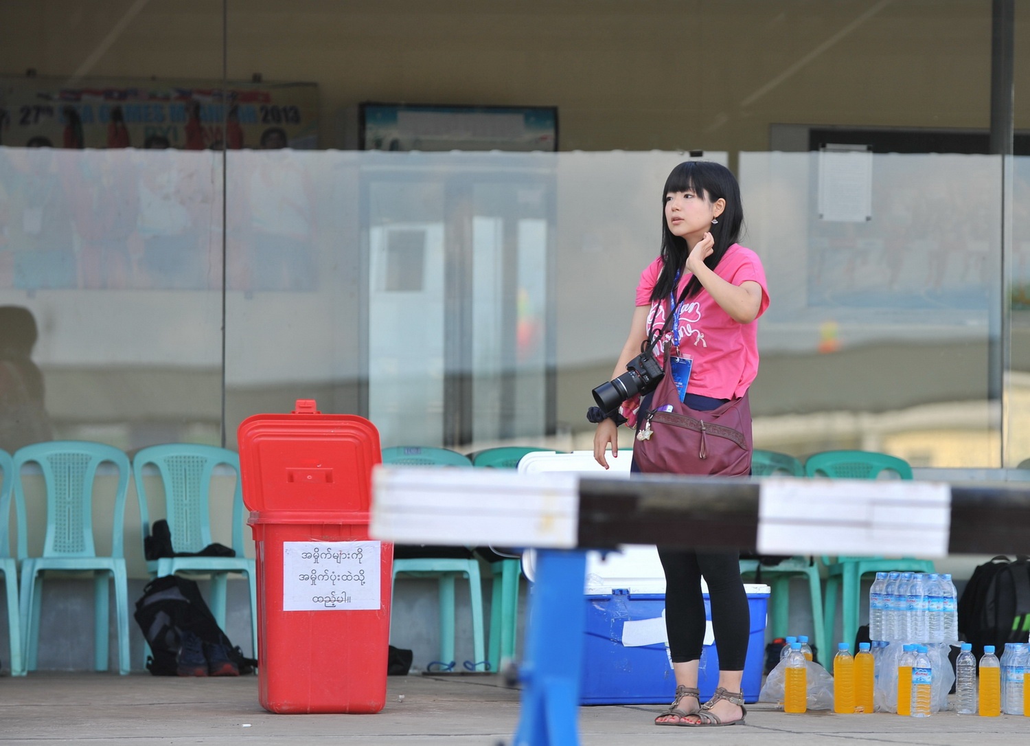 | Nữ phóng viên Hata đến từ Nhật Bản cũng có mặt theo dõi buổi tập của HLV Graechen cùng các học trò. |