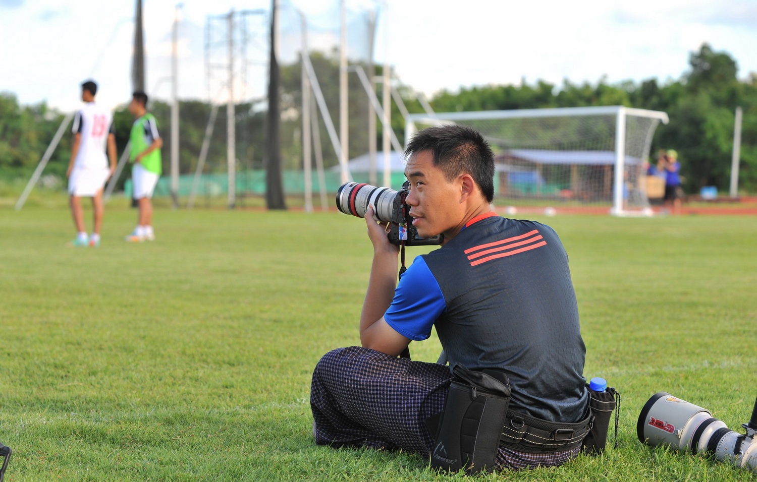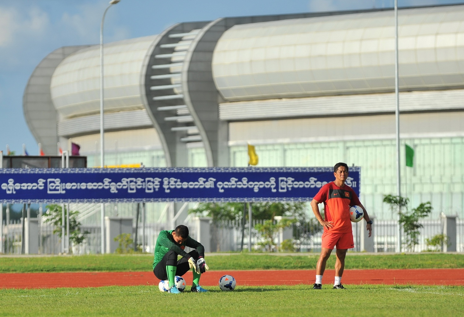 | Người này mặc váy giống hệt đàn ông Myanmar để giả danh đột nhập vào buổi tập của U19 Việt Nam. |