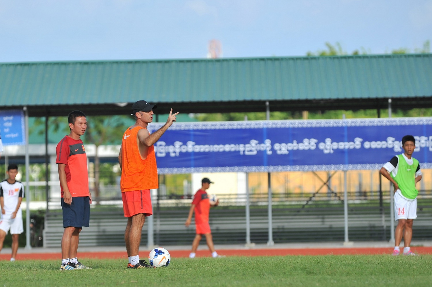 | HLV Graechen dành tới gần 30 phút cuối buổi tập để xốc lại tinh thần các học trò trước trận đấu ngày mai. Vị HLV người Pháp chia sẻ: "Ngày mai nếu khi tôi nóng nảy trên sân thì đó là vì tôi đã chọn và mong muốn các bạn chơi hay để giành chiến thắng. Tất cả BHL đều luôn muốn những điều tốt nhất đến các học trò". |