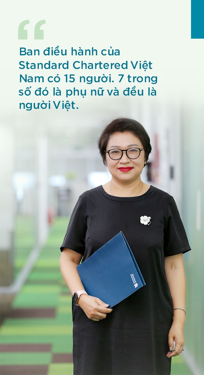 - Ở Standard Chartered Việt Nam, phụ nữ nắm giữ vị trí quản lý rất nhiều. Ban điều hành của ngân hàng có 15 người, thì 7 trong số đó là phụ nữ và đều là người Việt.