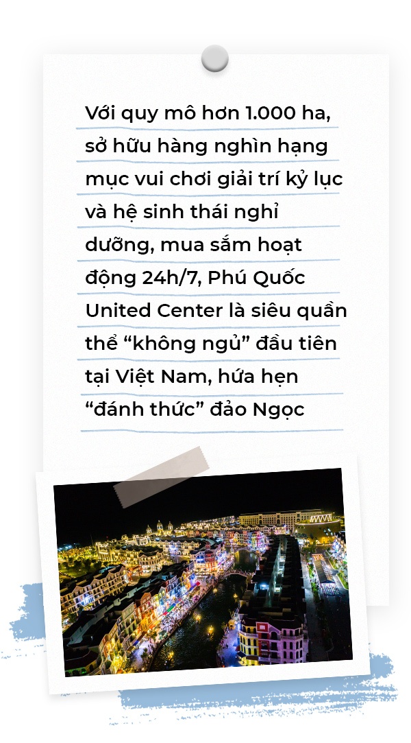 Theo đó, thành phố đảo đầu tiên của Việt Nam sẽ là nơi diễn ra chuỗi sự kiện - hoạt động náo nhiệt 24h/7 với gần 7.200 đại cảnh trình diễn, 12.000 mini show mỗi năm. Sở hữu hàng nghìn hạng mục vui chơi giải trí kỷ lục và hệ sinh thái nghỉ dưỡng, mua sắm hoạt động 24h/7 trên quy mô hơn 1.000 ha - Phú Quốc United Center chính thức là siêu quần thể “không ngủ” đầu tiên tại Việt Nam.