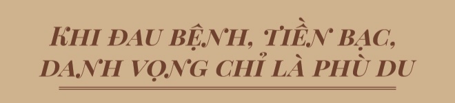 Tôi nhận ra khi đã đau bệnh thì mọi thứ bên ngoài kia kể cả danh vọng, tiền bạc chỉ là phù du. Vì vậy tôi không bao giờ muốn làm việc, chạy show đến mức bị kiệt quệ về sức khỏe, tinh thần. Lao vào kiếm tiền rồi lại cầm tiền đó đi mua thuốc uống sao? Tôi muốn cuộc sống của mình có sự cân bằng giữa sức khỏe và tiền bạc. Đôi khi mình phải lựa chọn một trong hai, chứ không thể đạt được tất cả. Và tôi phải học cách chấp nhận điều đó.