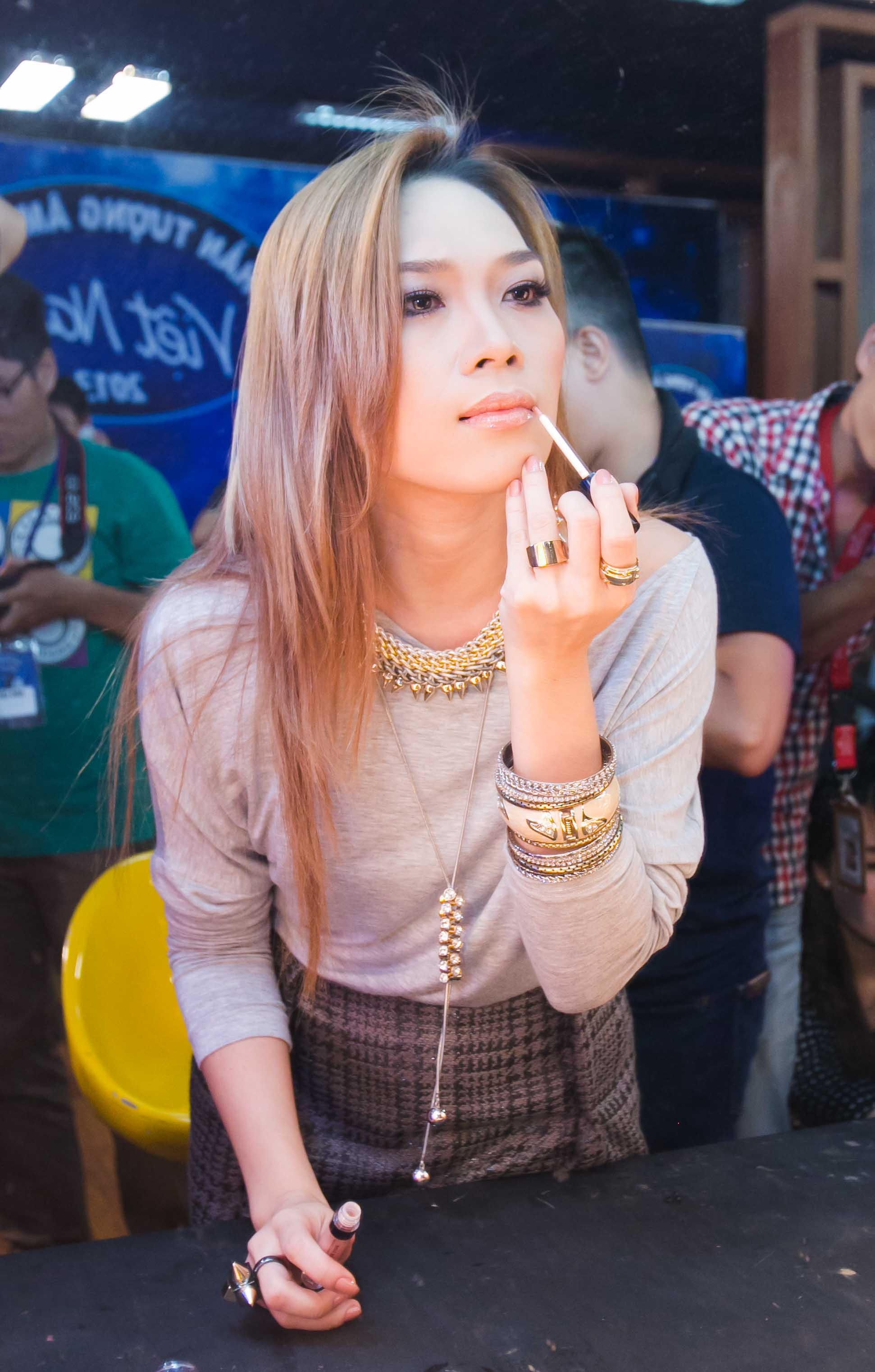 | Trong lần trở lại sân khấu Vietnam Idol, Uyên Linh được chuyên gia trang điểm Nam Trung giúp đỡ tận tình. |