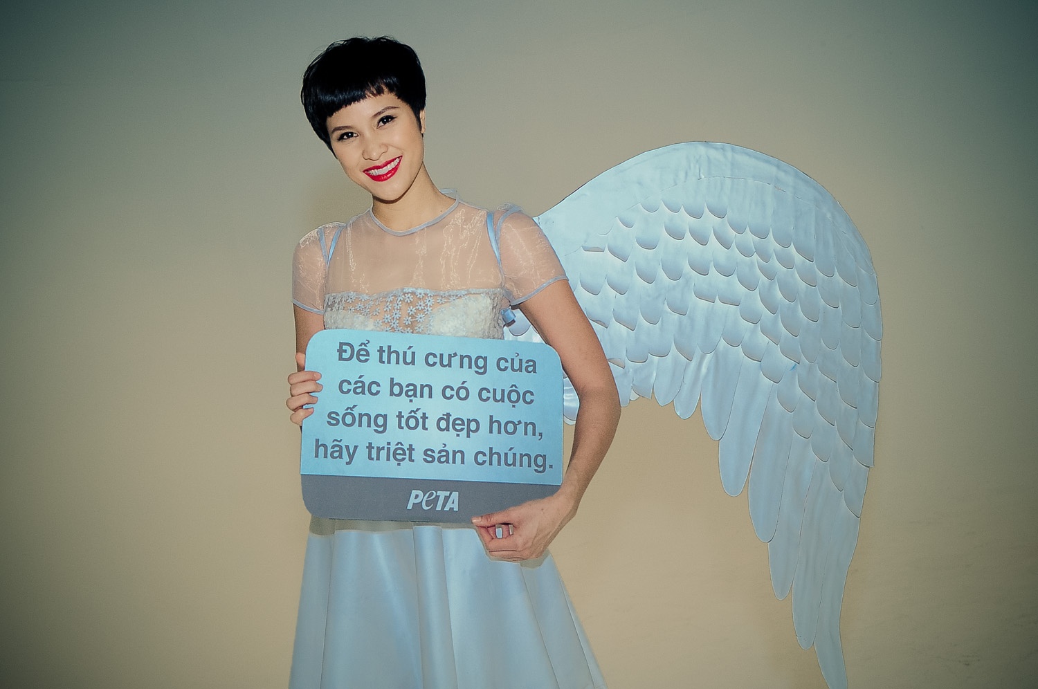 | Phương Mai đã được tổ chức People for the Ethical Treatment of Animals (PETA) chọn làm gương mặt đại diện cho chương trình cộng đồng sắp diễn ra trong thời gian tới. Chân dài sẽ sử dụng hình ảnh của mình để kêu gọi mọi người cùng chung tay giúp thú cưng có cuộc sống tốt đẹp hơn. |