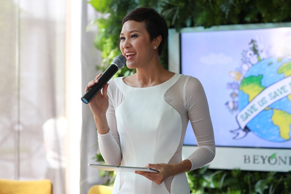 | Người tình cũ của đạo diễn Ngô Quang Hải đảm nhận vai trò MC buổi họp báo hôm 4/4. |