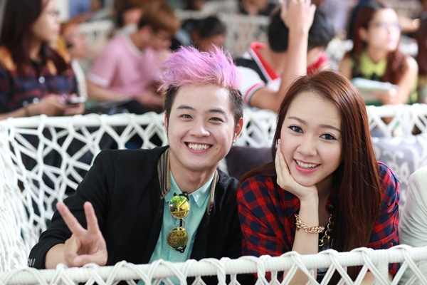 | Thanh Duy và Băng Di quất quýt không rời trong suốt buổi họp báo. |