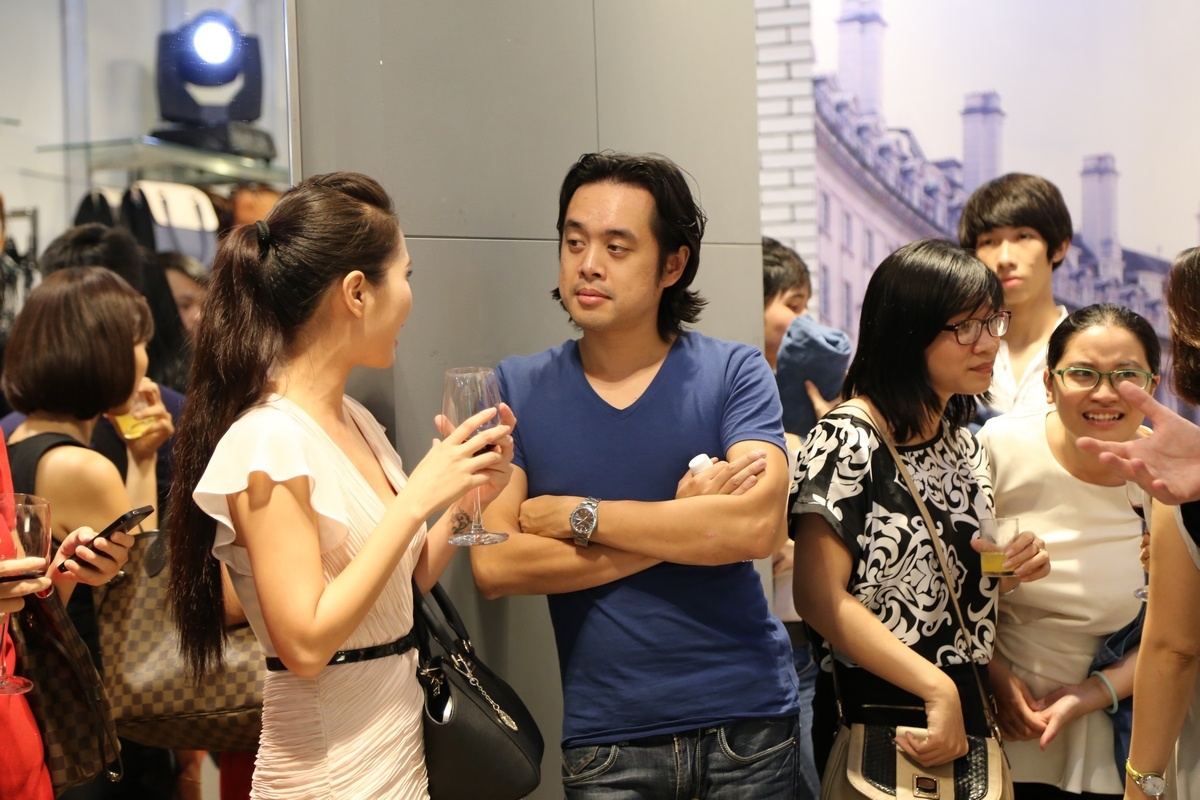 Dù rất bận rộn với lịch quay chương trình X Factor, giám khảo Dương Khắc Linh vẫn tháp tùng Trang Pháp đến dự sự kiện. Anh đứng từ phía xa trò chuyện cùng bạn bè trong lúc hot girl biểu diễn trên sân khấu.