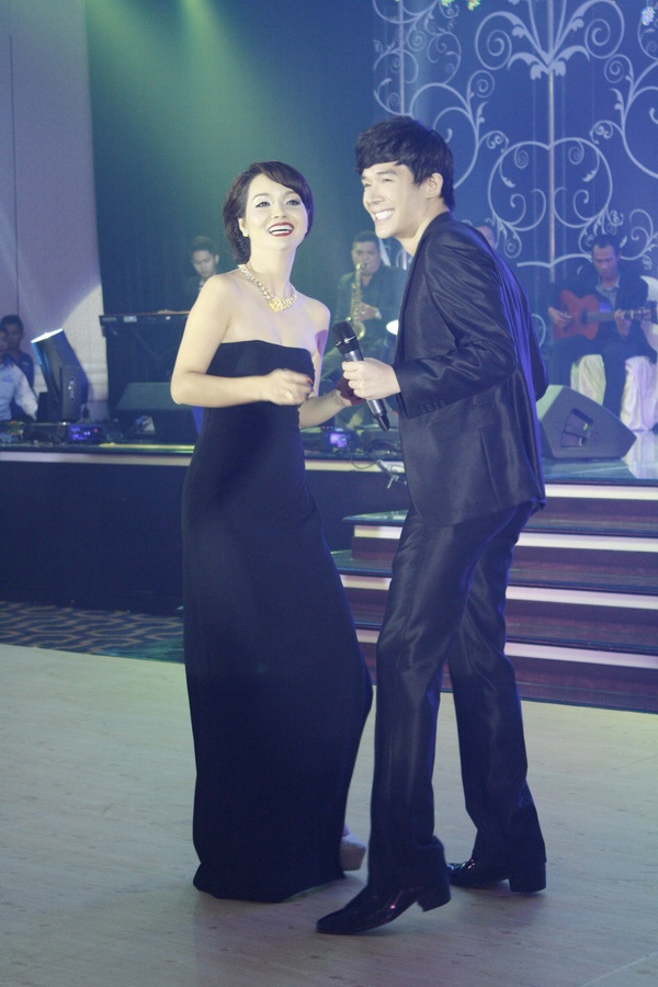 | Trên sân khấu, cựu người mẫu chia sẻ anh đang bị sốt và gặp nhiều áp lực với lịch tập thanh nhạc từ cuộc thi Chinh phục đỉnh cao. Tuy vậy, anh vẫn hát rất sung, thậm chí, còn ngẫu hứng khiêu vũ cùng nữ diễn viên Mai Thu Huyền. |