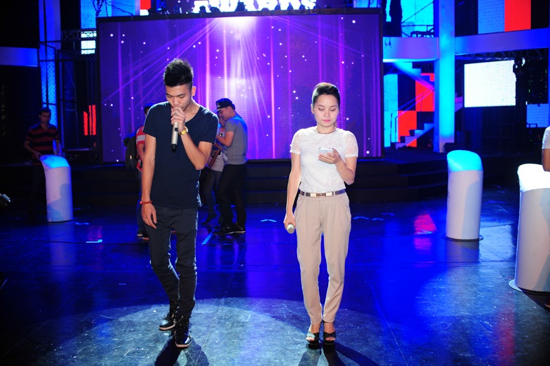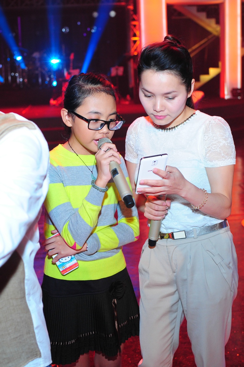 Cô bé 10 tuổi còn khá nhút nhát trước không khí sôi động của buổi tập duyệt. Đoàn Thúy Trang chủ động làm quen để bắt nhịp cùng Mỹ Chi trong tiết mục đặc biệt. Nguyễn Hải Phong và Big Daddy cũng hỗ trợ cho giọng ca nhí. |